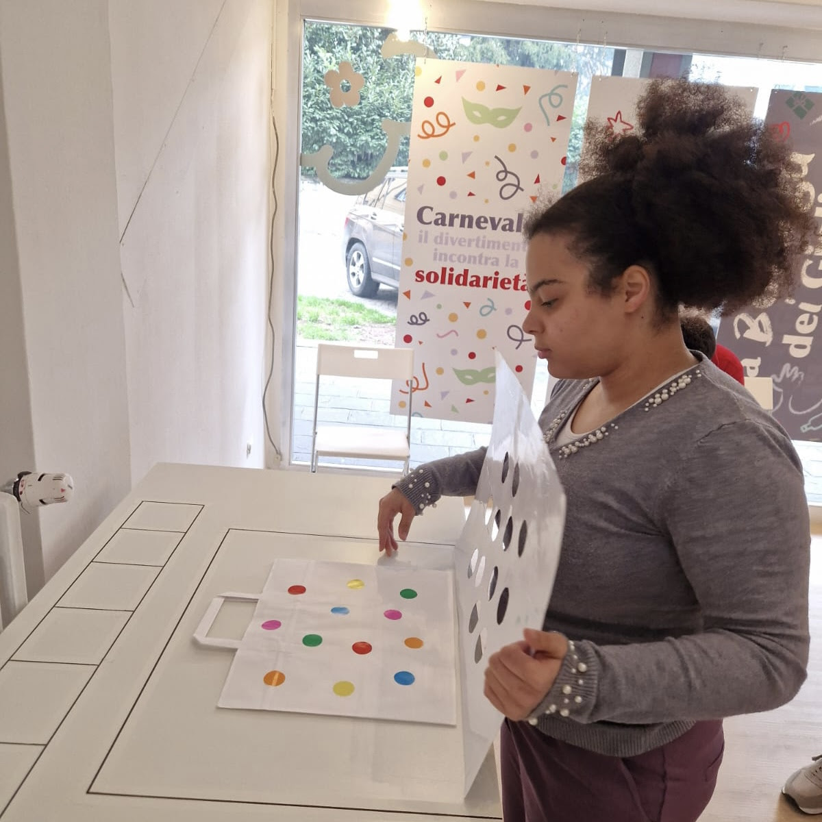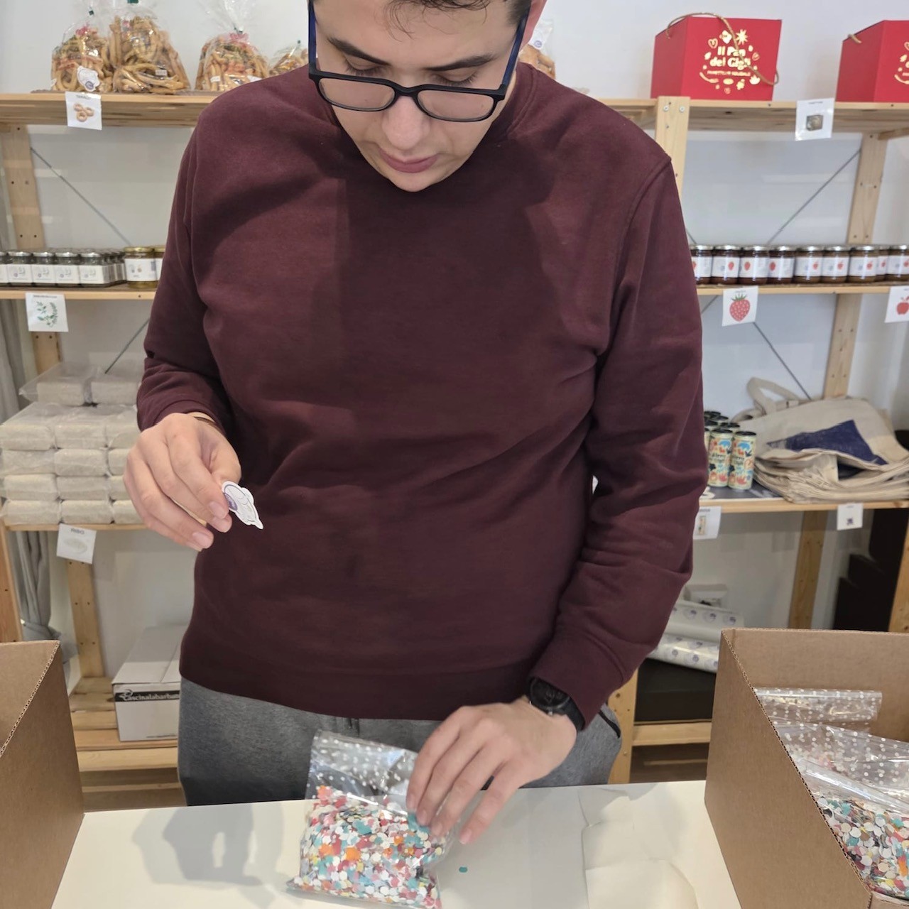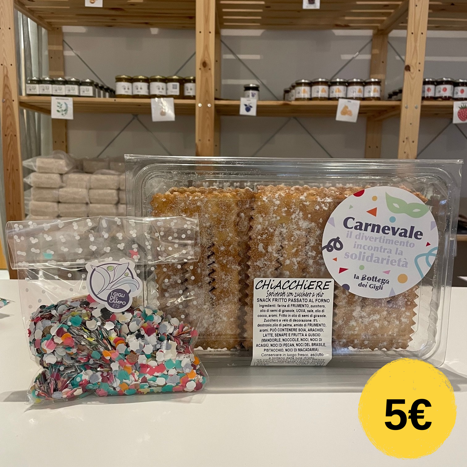 Per ogni confezione acquistata riceverai in regalo un sacchettino di coriandoli, preparato proprio dai nostri ragazzi.